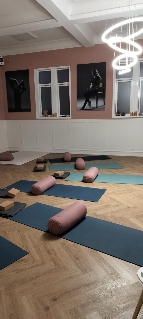 Jeg bor lige i midten af Nordjylland og mit yogastudie med kliniklokale er beliggende i Hjørring, men deltagere, klienter og kommende og nye forældre kommer helt fra syd for Aalborg til Frederikshavn, Sæby, Hirtshals og Skagen i nord og alt derimellem. Jeg kommer også gerne på hjemmebesøg. Mine lokaler er beliggende i en stemningsfuld bygning, der tidligere har huset en kirke. I den hyggelige, smukke nyrenoverede kirkesal har jeg mine hold, behandlinger, yoga og mindfulness. Jeg har dog mit gravid-træningshold på Fanøvej 2, da det er i samarbejde med fysioterapeut og osteopat-studerende Ann-Sophie fra Hjørring Fysioterapi.