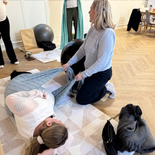 Forløbet strækker sig over 8 mødegange. Holdet er sammensat af skiftevis 60 min holdtræning med Ann-Sophie alene og 90 min med både Ann-Sophie og min deltagelse. På de 4 sidstnævnte fælles mødegange er først tilrettelagt 45 min træning hvor jeg også træner med. Herefter følger 45 minutter, som handler om graviditet, fødsel, den første tid med baby og kroppens tilbagevenden efter fødslen. Der er fødselsforberedende viden og information, men også introduktion til vejrtrækningsteknikker og afspænding. Jeg medbringer også rebozo-tørklæder, som vi afprøver.
